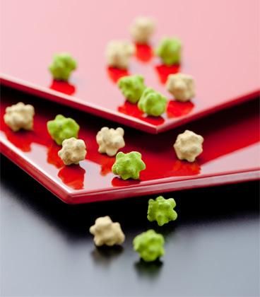 四百年以上の歴史を誇る伝統の菓子「金平糖」。 小さくて可愛らしい「金平糖」は、砂糖だけという極めてシンプルな素材からできています。釜で砂糖を転がしながら、糖蜜(砂糖)を噴射していき、少しずつ凸凹状の角(つの)を作る、まさに職人独自の勘と熟練した経験により一粒一粒丹精込めて作られます。